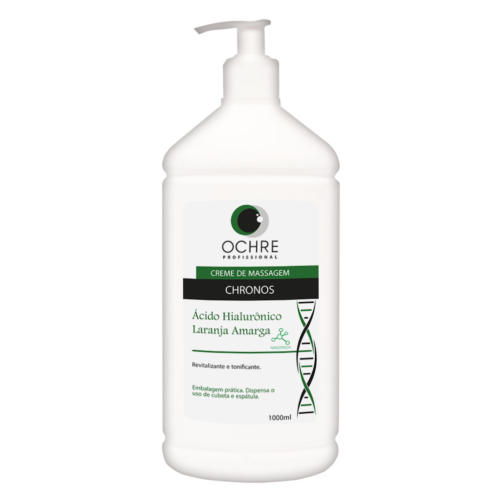 Benefícios: O Creme de Massagem CHRONOS possui um ativo antiglicante conhecido por atuar minimizando a união entre o açúcar que consumimos e as proteínas, prevenindo assim o envelhecimento precoce e a flacidez. Contém também ativos que agem na firmeza da pele, como o ácido hialurônico e a vitamina C e na redução de medidas e celulite como a laranja amarga e os extratos de cavalinha e guaraná.